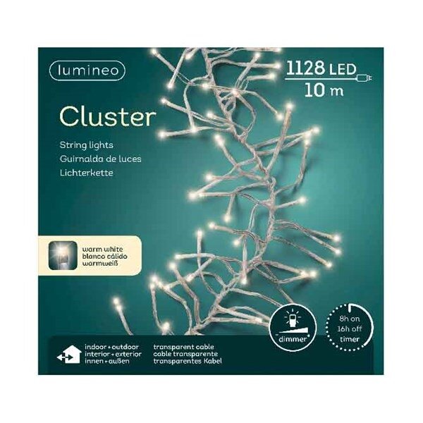 Cluster Lights 1128led 10m warm white transparant snoer | Lumineo 494791