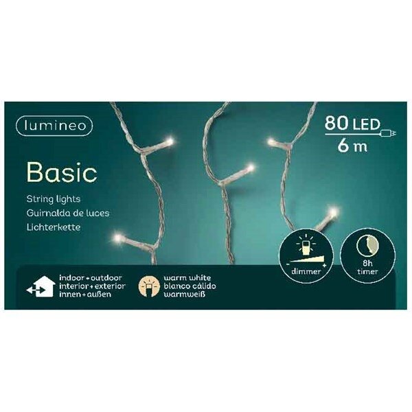 Schrijf zelf een recensie over "Basic rice lights 80led 6m warm white transparant snoer | Lumineo 494247"