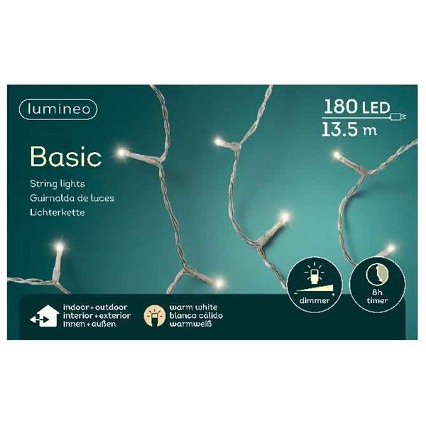 Schrijf zelf een recensie over "Basic rice lights 180led 13.5m warm white transparant snoer | Lumineo 494257"