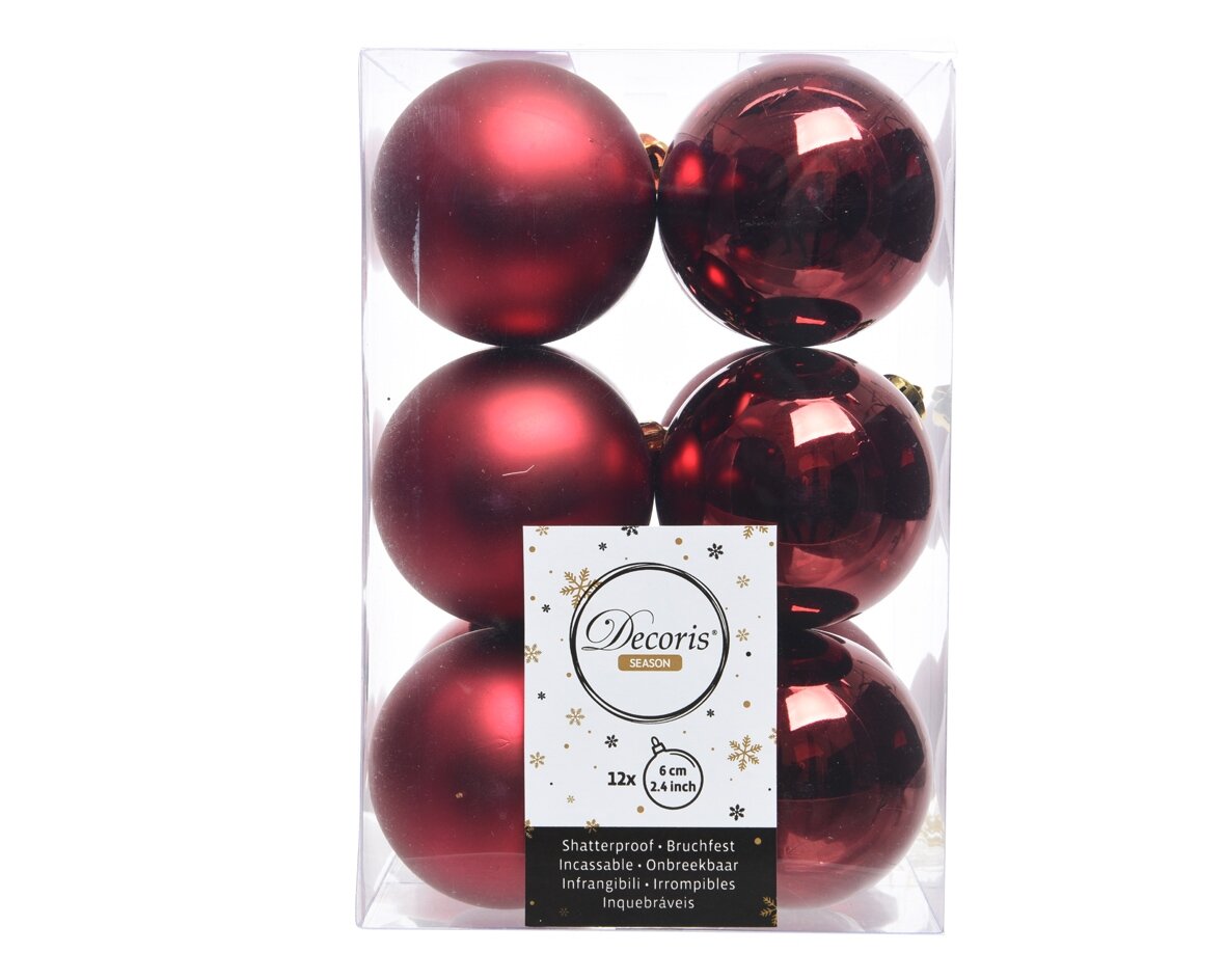 Schrijf zelf een recensie over "Decoris onbreekbare kerstballen ossenbloedrood 12 stuks"