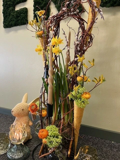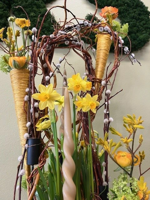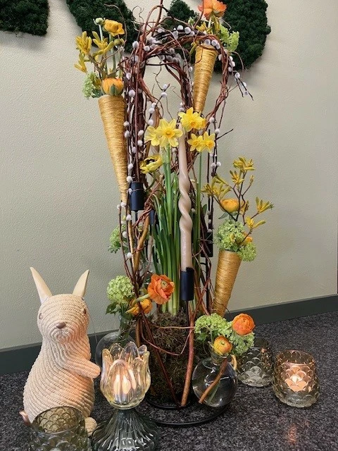 Stap even uit de drukte van alledag en laat je professioneel begeleiden door Wout Knuts. Hij maakt samen met jullie een alternatief paasbloemstuk. De ondergrond bestaat uit een 4-armige kandelaar die hij samen met jullie omtovert tot een passend paasarrangement.
